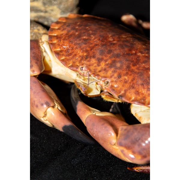 Buey de mar: (Cancer pagurus) Es un robusto crustáceo, su peso varía entre 0,400 kg y 2 Kg. Es un marisco que destaca por su abundante carne. Ofrece infinidad de formas de preparación, tanto para tomar solo como en la elaboración de infinidad de platos como salpicón de marisco, pimientos rellenos de buey, croquetas de marisco, etc.